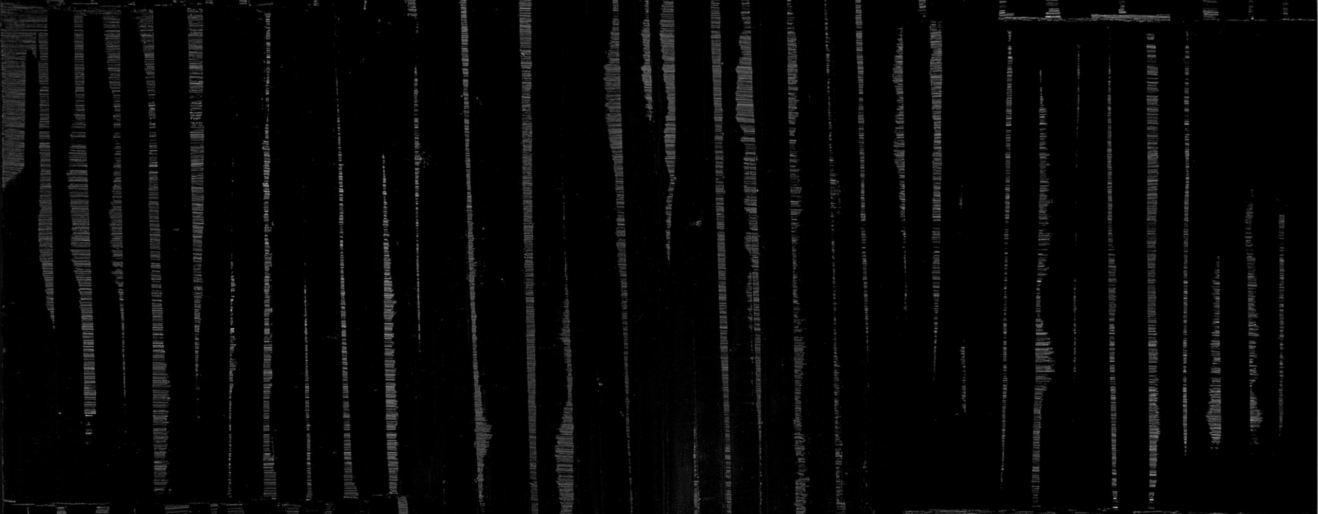From the start, Soulages opted for total abstraction, questioning the traditional elements of paintings. Through the materials he employs (walnut stain, tar, etc.), through his tools, often those of house painters, and his decision to identify his canvases by their technique, dimensions and production date, rather than by a title guiding one’s vision, he has adopted a singular position since 1948, when he wrote: “A painting is an organized whole, an ensemble of forms (lines, coloured surfaces…) upon which our interpretations of it emerge and fall apart”.
