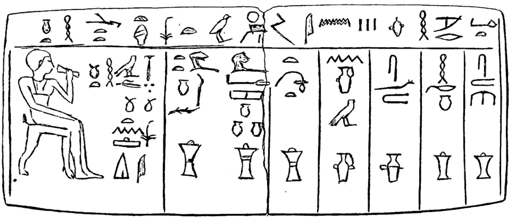 The inscribed text is typical for a false door stela. It consists of the traditional offering formulae, which mention: