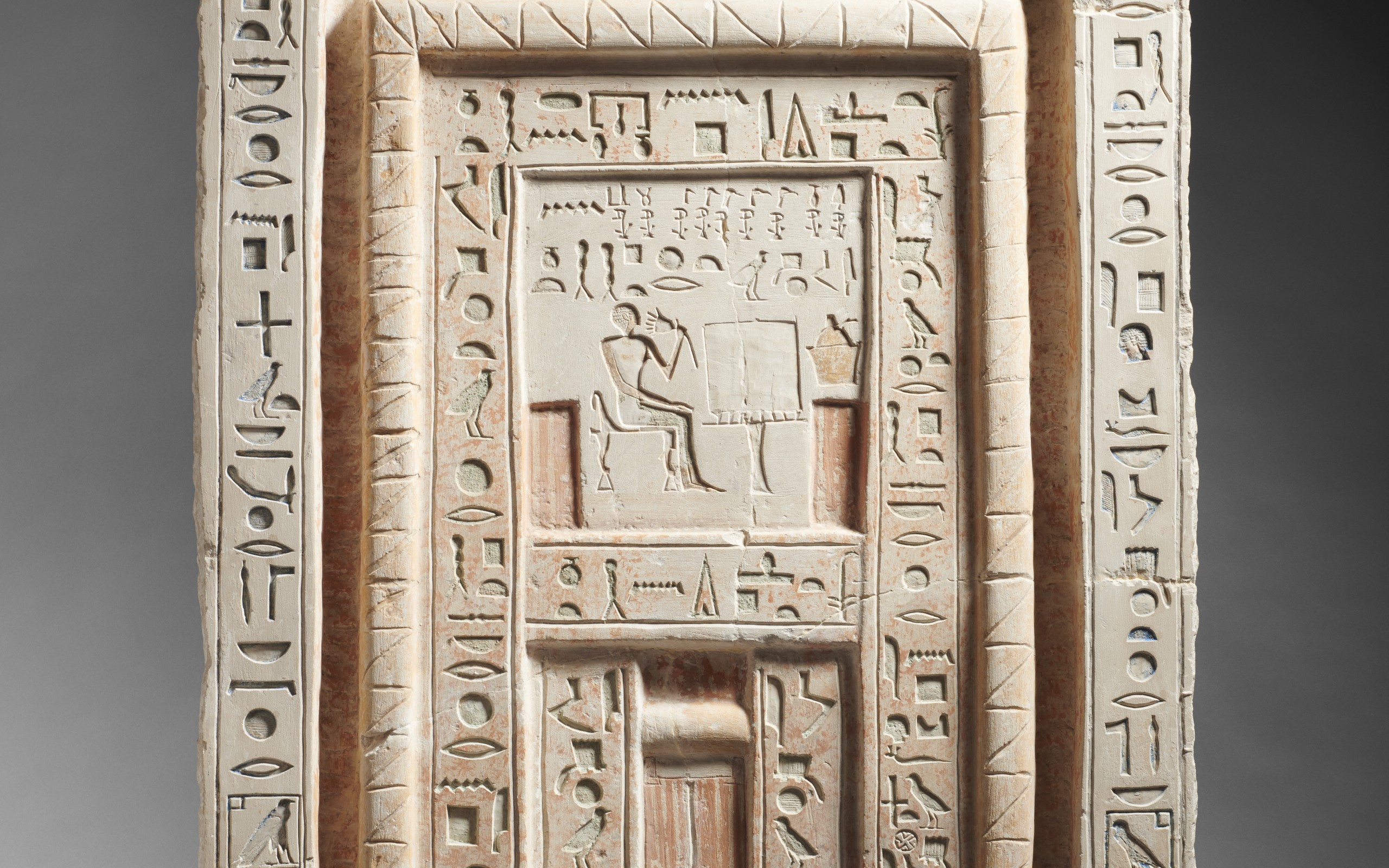 This beautiful Egyptian relief represents what is known in Egyptological jargon as a false door stela (fig. 1). Carved from a block of limestone more than a metre high, this fascinating work, dating from the 3rd millennium BC, has retained its brightness despite a few evident marks from the passing of time on its lower left-hand side. Luckily, its inscriptions are intact!