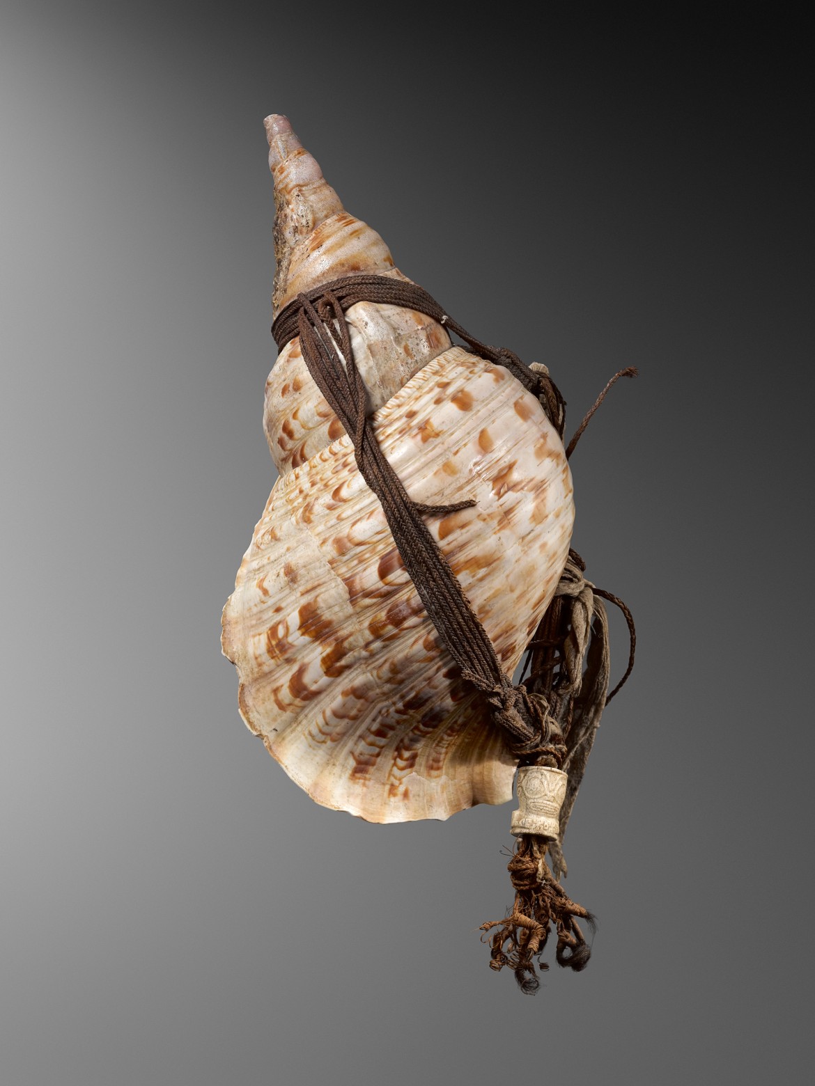 Shell (Charonia Tritonis), coco fiber, hair, tapa, bone