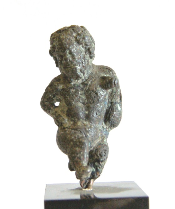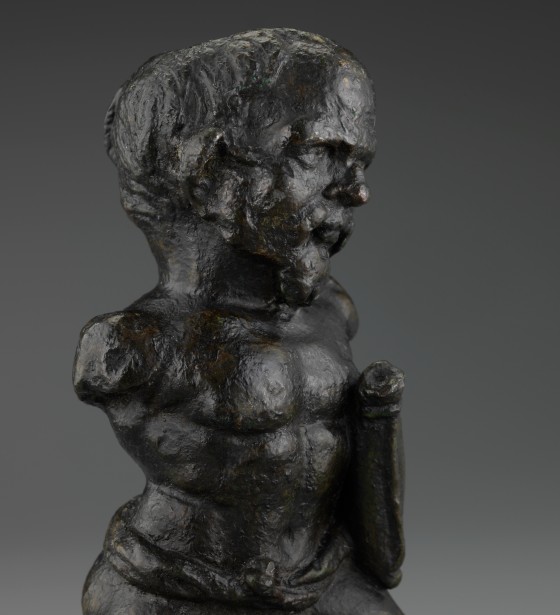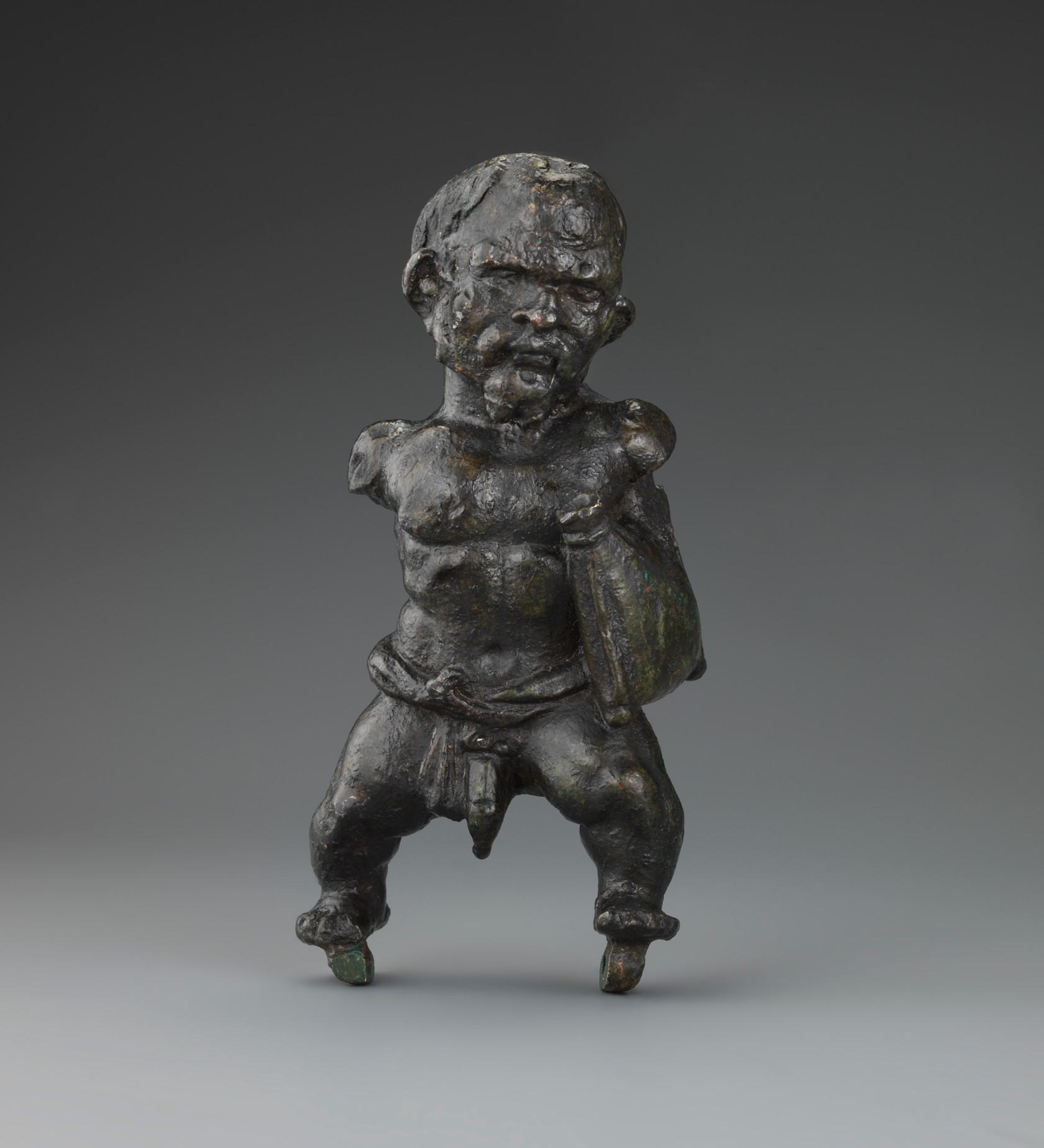 A connoisseur of TV series might regard this small bronze figure as an early version of Tyrion, the cunning Imp of House Lannister, one of the most striking characters in the Game of Thrones saga1. Like him, our little bronze man suffers from achondroplasia, a form of dwarfism characterized by a disproportionate head compared to the size of the body, a dolichocephaly underlined by a bulging forehead and strong occipital protrusion, and short limbs (fig. 1)2. The developed muscles of the torso and limbs, well formed but crooked, give Tyrion and his antique cousin a radiant physical presence, which is also due to the expression of their face and their energy.