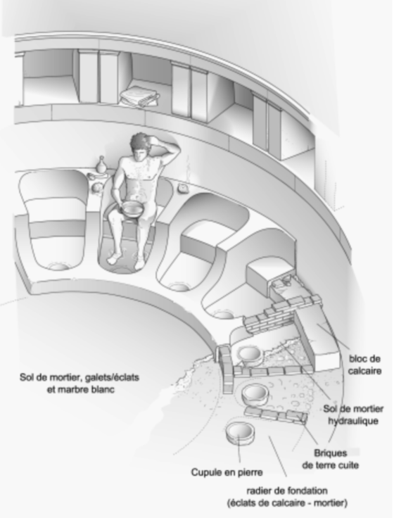 - Fournet, “Heating Systems”, pass. ; Fournet, “Balaneia grecs”, pass.