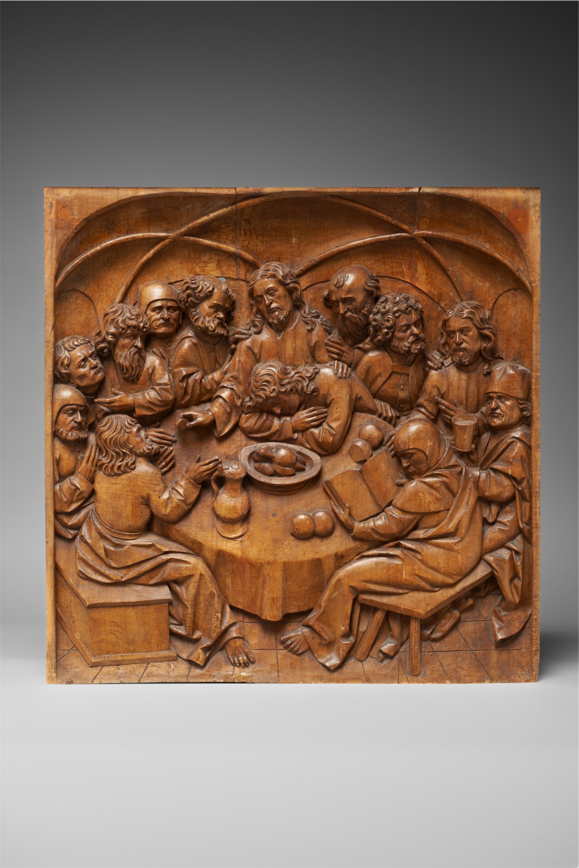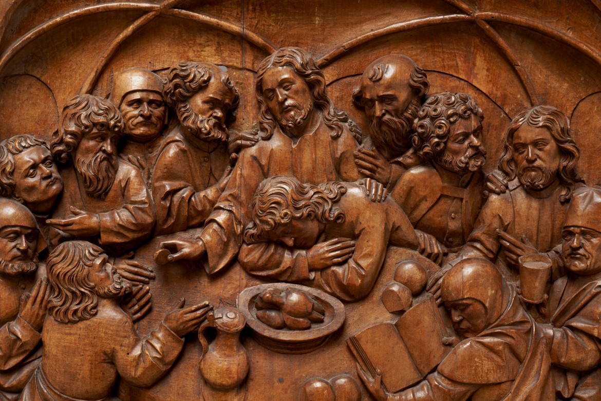 Created circa 1500 in the workshop of the great Alsatian sculptor Nikolaus Haguenauer, this lindenwood relief depicts a studied play of glances among the characters gathered for the Last Supper of Christ, making it possible to identify the most important ones among them, their roles and relationships to Jesus.