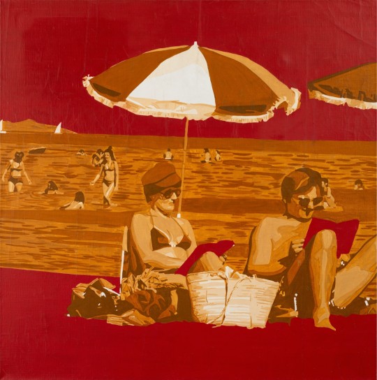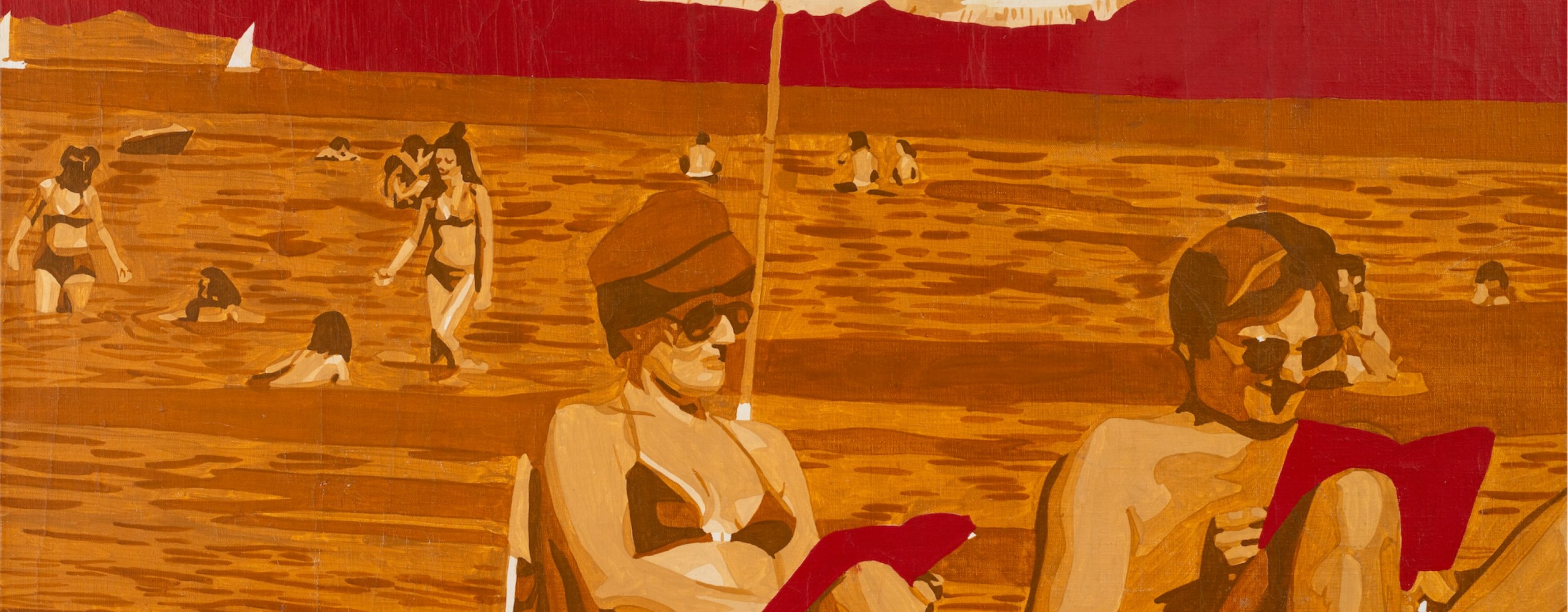 In historical terms, the artist’s work converges with Pop Art, displaying his preference for bold, non-modulated colours, but is also in constant revolt against any categorical form of artistic convention. His conversions to various practices led him to remain constantly open to new ideas. His exploration of all the traditional themes of painting – portraiture, nudes, landscape, mythology, history painting – places him within the continuum of art history, but his form, devoid of all symbolism, implies at the same time a rupture. Fromanger’s work is that of the tension between the figurable, the representable (bodies, landscapes, cities, etc.), and that which resists: the unrepresentable, the uncertain, with its stretches of abstract painting.
