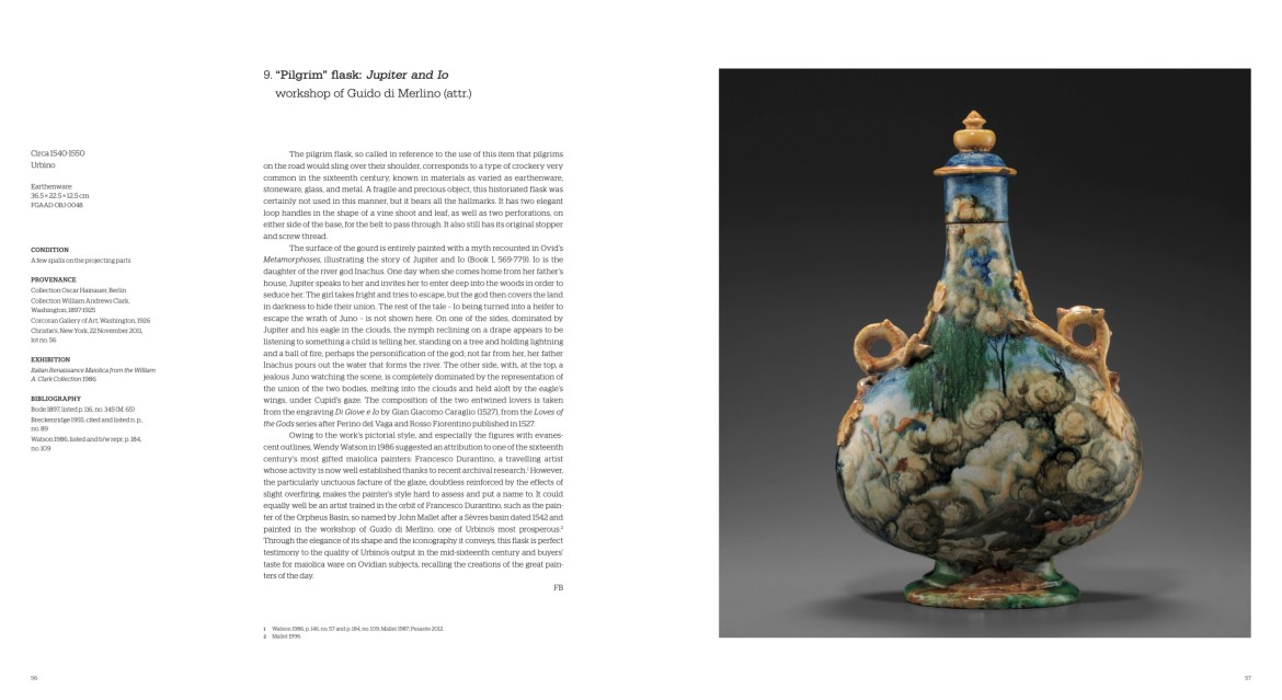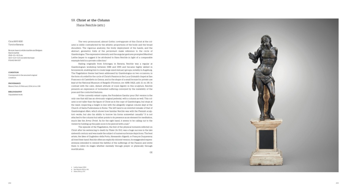 This first catalogue of the Fondation Gandur pour l’Art’s decorative arts collection is devoted to works of Western art, from the twelfth to the eighteenth century, which serve both an ornamental and a narrative purpose. Sacred and profane, carrying symbolic or spiritual value, these sculptures, enamelled plaques, maiolica ware, and tapestries draw their inspiration from the repertories of Christian and ancient subjects that make up European culture.