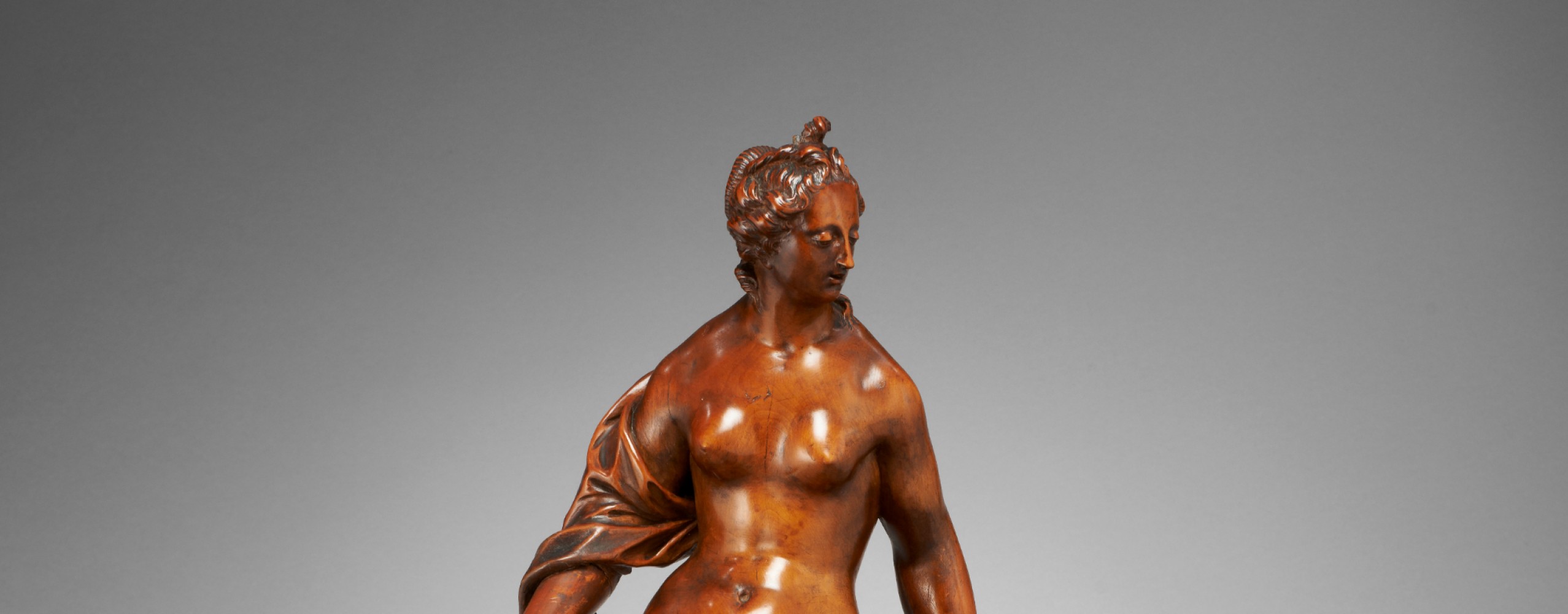 Sculpted in a finely polished and chiselled boxwood, these two female statuettes, with their complex poses and fluid folds of fabric, evoke the culture and tastes of Renaissance art lovers.