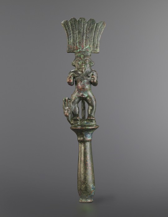 Embout en forme de colonnette surmontée du dieu Bès et d'une antilope