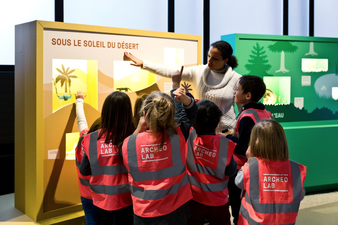 A l’ArchéoLab, le jeune visiteur est toujours à l’honneur. Dans cette nouvelle aventure, il part pour un safari archéologique à la découverte des animaux qui peuplaient l’Antiquité. Muni d’une loupe, d’une paire de jumelles et d’une pincette à insectes, le petit archéologue en herbe plonge dans l’univers des bêtes et de leur rapport à l’homme. Au cours de sa visite il manipule et expérimente au gré des postes interactifs, il s’amuse et réfléchit grâce à des petits films d’animation, découvre et admire les objets archéologiques mis en situation dans l’exposition.