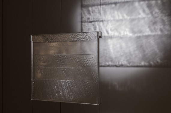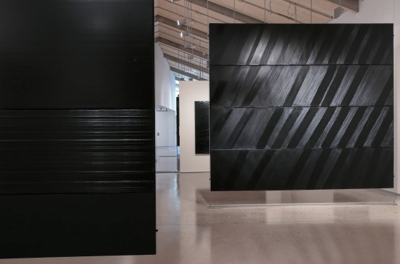 Les œuvres de l’artiste présentent des états de surface changeants selon la technique utilisée – l’huile mélangée à une résine acrylique, ou exclusivement l’acrylique depuis 2004 –, l’épaisseur et, surtout, le traitement de la couche picturale. Celui-ci joue en effet sur la juxtaposition du mat et du brillant, ou sur des aplats et des stries produits grâce à des outils spécialement conçus à cet effet. De fait, la puissante structuration de la couche picturale contribue de manière déterminante à la captation de la lumière, dont l’intensité s’apaise ou vibre tour à tour. L’interaction entre un Outrenoir et la lumière incidente ambiante, aux variations infinies – éclairage naturel ou artificiel, reflets alentour – modèle l’espace qui s’étend du tableau au spectateur. L’expérience de la toile se joue en effet dans une relation triangulaire, sans cesse réactualisée au gré des déplacements du regardeur, entre tableau, éclairage et point de vue. L’appréhension spécifique de l’Outrenoir, liée à la diffusion d’un champ lumineux réfléchi par la toile en fonction de l’angle sous lequel elle est perçue, donne au public le rôle d’acteur de l’œuvre. Dans cette démarche de transformation de la lumière dans l’espace, tout concourt en définitive à faire de la lumière une matière.