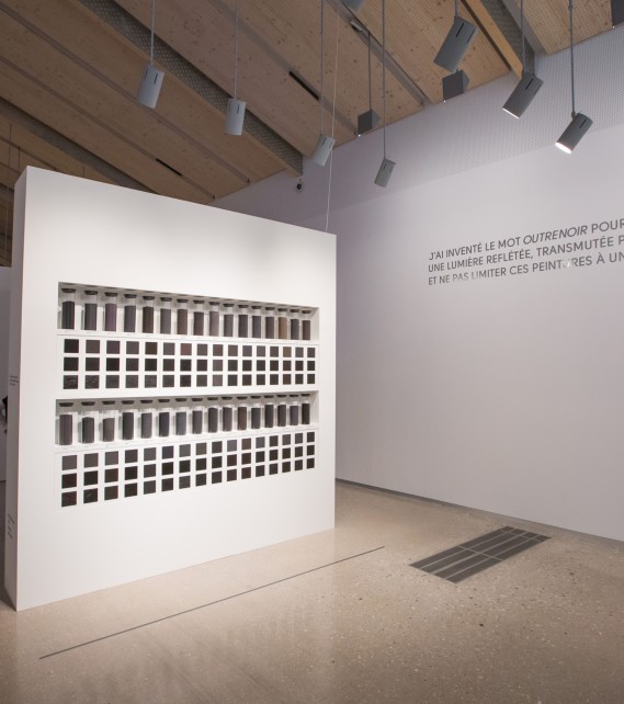L’artiste a précisément forgé le terme d’Outrenoir pour désigner ce « noir lumière », objet d’une quête inlassable depuis près de quarante ans. Tel est donc le paradoxe du noir chez Soulages : si depuis la théorie des couleurs d’Isaac Newton le noir a été considéré comme une non-couleur, absorbant toute lumière, il est au contraire appréhendé par le peintre comme le moyen même de révéler et de conduire cette dernière.