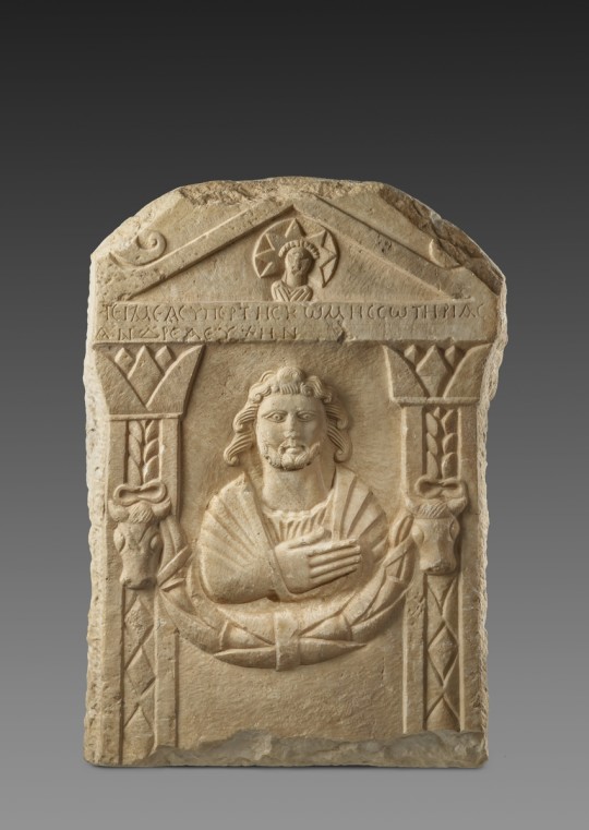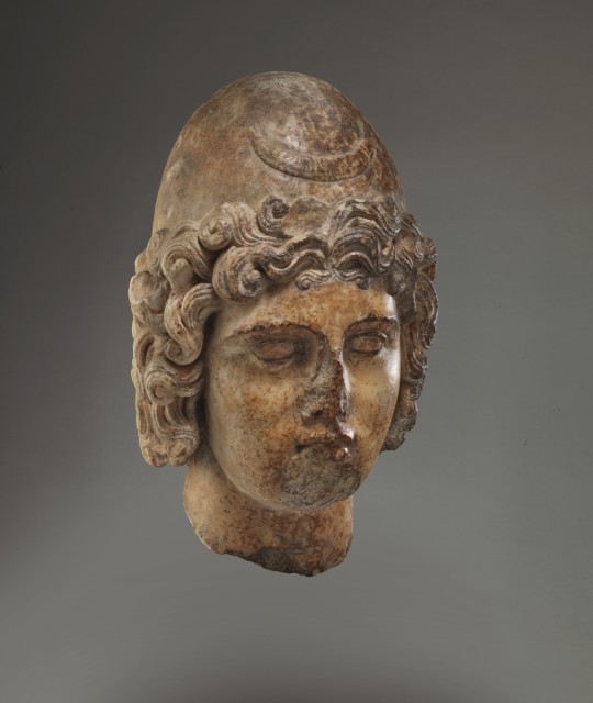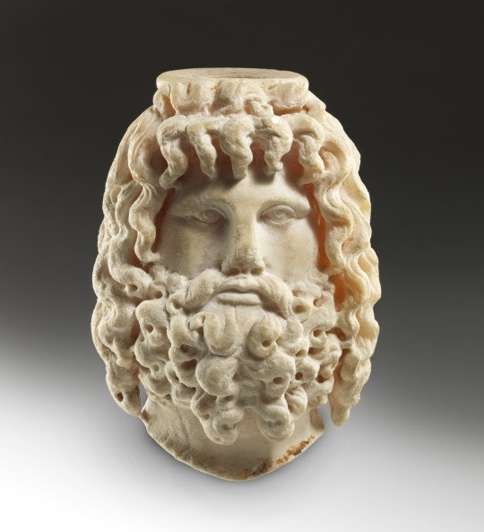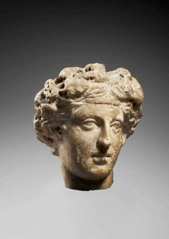 Tête archaïsante de Dionysos Pôgon appartenant à un pilier biface