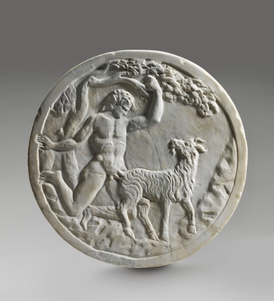 Statue du dieu Dionysos appuyé contre une vigne avec une panthère