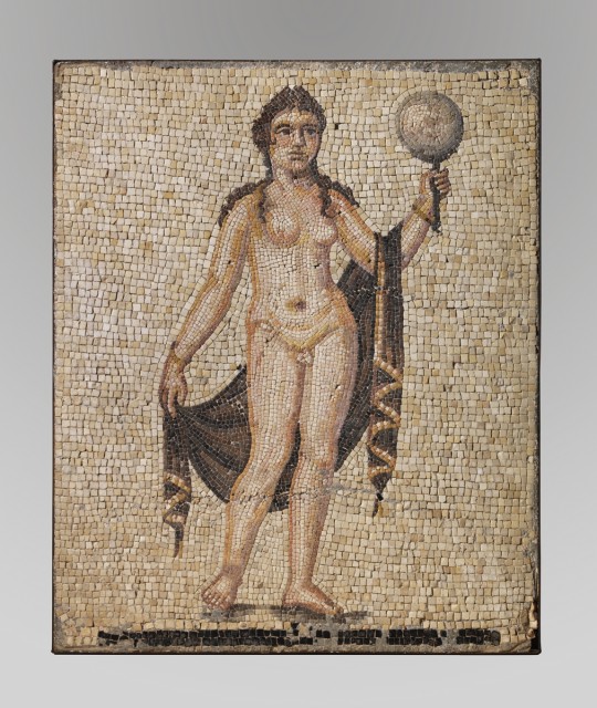 Mosaïque représentant Hermaphrodite debout, se regardant dans un miroir