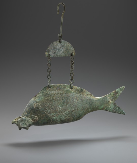 Ex-voto à Apollon en forme de poisson tenant un coquillage dans la gueule