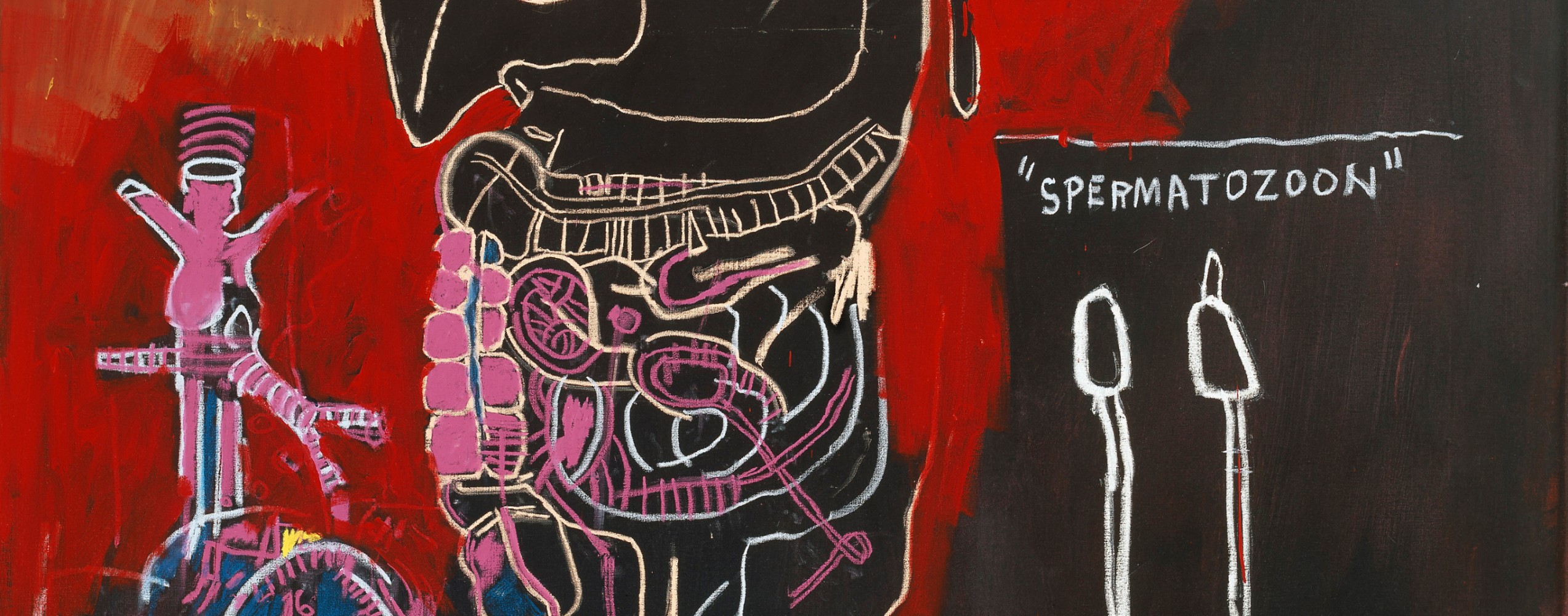 L’exposition de l’Albertina regroupe cinquante œuvres de collections publiques et privées exceptionnelles, afin d’apporter un regard nouveau sur la production singulière de Basquiat. Le parcours amène avant tout à découvrir son langage pictural : un trait énergique, des mots, des symboles et une manière unique d’intégrer le collage à ses peintures, sculptures, objets et dessins de grand format. Ces éléments sont autant d’outils narratifs qui permettent à l’artiste de valoriser son héritage afro-americano et caribéen et de remettre en question l’omniprésence du racisme et des hiérarchies sociales. L’œuvre de Basquiat apparaît ainsi d’une extraordinaire contemporanéité.