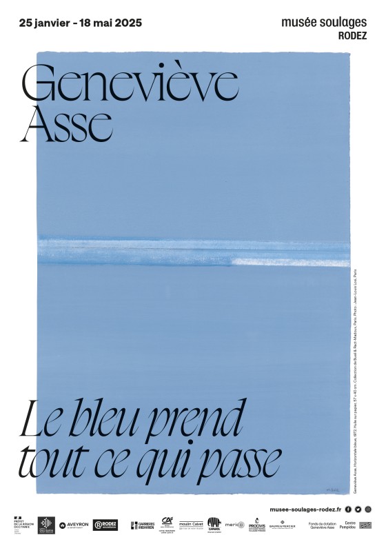 Du 25 janvier au 18 mai 2025, l’exposition Geneviève Asse. Le bleu prend tout ce qui passe regroupera 70 œuvres de l’artiste peintre et graveuse française Geneviève Asse (1923-2021) au Musée Soulages à Rodez. La Fondation Gandur pour l’Art prête deux œuvres à cette occasion.