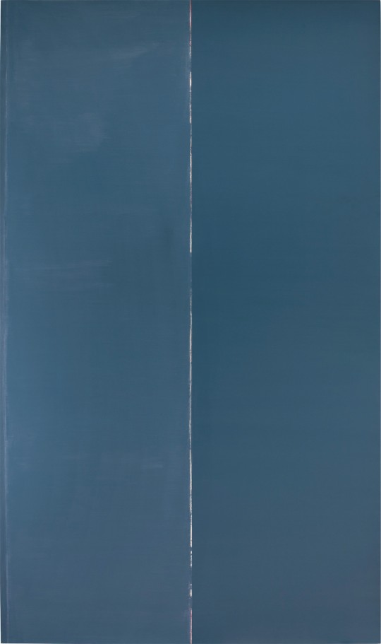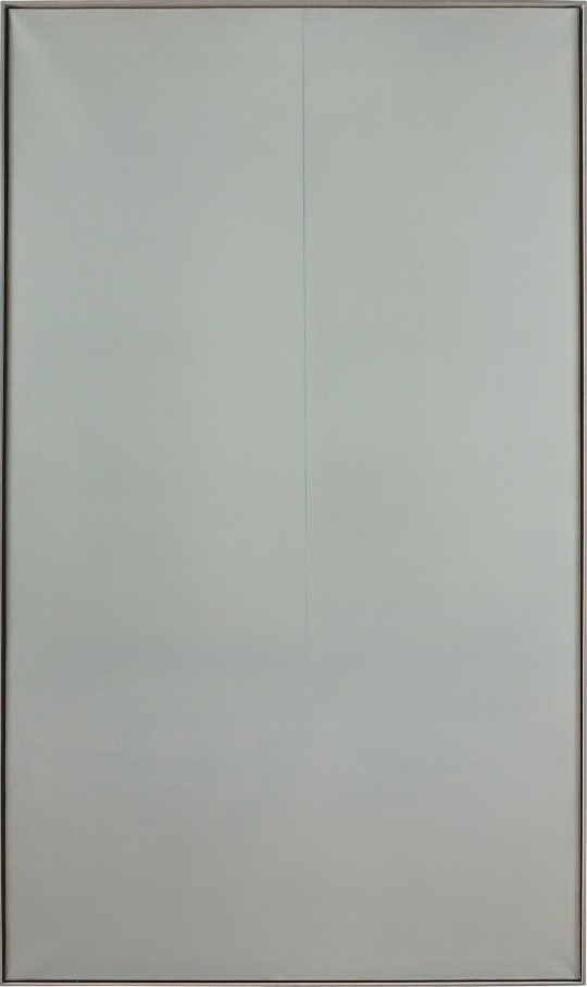 Depuis les années 1970, Geneviève Asse peint en bleu. Sa palette va du bleu clair au bleu profond, c’est sa marque poétique et sa technique. Ce bleu n’est pas monochrome au sens strict, mais exprime la passion, l’empathie avec la mer et le ciel, avec l’infini. Le bleu sans cesse gagnera du terrain : « Le bleu prend tout ce qui passe » affirmera-t-elle. La lumière, fractionnée, diffusée, naissante… est la grande affaire de Geneviève Asse. C’est une lumière immanente, une sorte de paysage grand ouvert, horizontal.