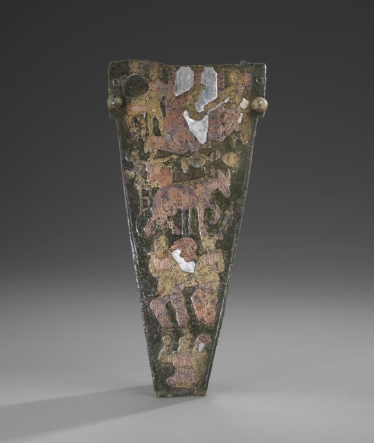 Un dialogue entre d'immenses tapisseries du XVIIIe siècle mettant en scène des figures historiques ou des empereurs romains avec des objets archéologiques