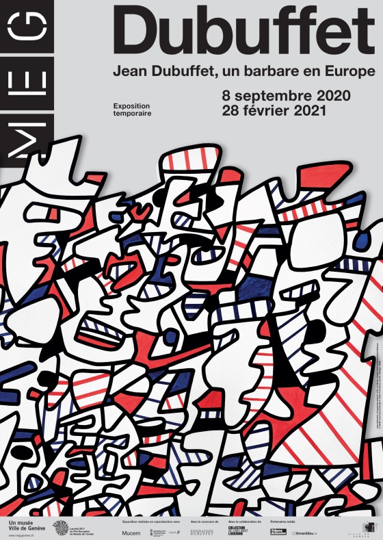 Réalisée en co-production avec le Musée des Civilisations de l'Europe et de la Méditerranée (Mucem) de Marseille (France) et l’IVAM Institut Valencià d’Art Modern de Valence (Espagne), l’exposition itinérante Jean Dubuffet, un barbare en Europe prend ses quartiers au MEG pour sa troisième étape. Elle met en avant la visite que l’artiste a effectuée en Suisse durant l’été 1945 et donne à voir comment il entremêle dans son œuvre ses activités de peinture et d’écriture avec les recherches qu’il a consacrées à ce qu’il nomme l’Art Brut. Jean Dubuffet, un barbare en Europe présente sa production artistique dans toute sa diversité, en s’attachant notamment à montrer les objets et documents qui l’ont inspiré au cours de ses visites dans les musées d’ethnographie ou d’art populaire et dans diverses collections dédiées à « l’art des fous ».
