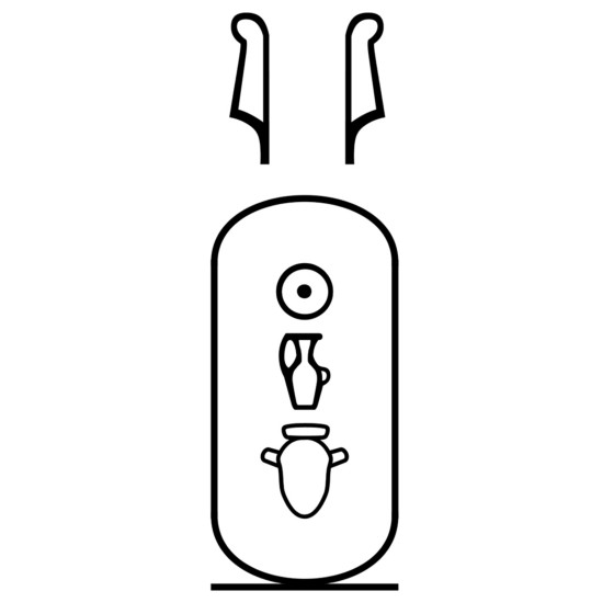 Si l’iconographie est très parlante, cette gourde présente en plus un court texte hiéroglyphique en deux parties, inscrit sur la bande en saillie de part et d’autre de l’objet. En lieu et place du Happy New Year aujourd’hui internationalement associé au nouvel an, les anciens Égyptiens utilisaient un éventail de formules somme toute similaires, bien que plus ampoulées et associées à une ou plusieurs divinités. Amon, l’un des dieux majeurs du panthéon, auquel le grand temple de Karnak à Thèbes (Louxor) est dédié, est parfois nommé sur ces gourdes (voir fig. 4, où Amon est mentionné avec son épouse Mout et leur fils Khonsou (dans la colonne centrale du texte). Mais ce sont Ptah et son épouse Sekhmet, divinités principales de Memphis (au sud du Caire), qui sont le plus fréquemment invoquées. Sekhmet, souvent représentée avec une tête de lionne, avait un grand potentiel destructeur et l’on s’échangeait volontiers des amulettes de Sekhmet le jour du nouvel an dans l’espoir d’apaiser cette divinité. Ptah, quant à lui, est l’un des dieux les plus anciens, connu dès la première dynastie (env. 2900 av. J.-C.), et considéré selon certaines mythologies, surtout à Memphis, comme le dieu créateur6. Il n’est dès lors pas surprenant que son nom figure souvent sur les gourdes du nouvel an, ce qui est justement le cas sur notre gourde d’Ahmose II.