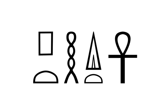 - Translitération : dỉ ꜥnḫ Ptḥ // wp rnp.t nfr.t n nb-s. Le texte hiéroglyphique est écrit en colonne mais est rendu ici sous forme de ligne.