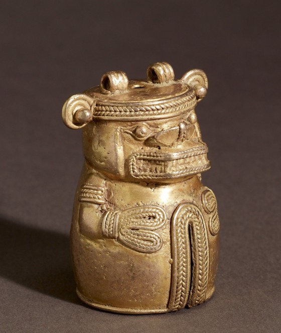 L’objet qui va nous occuper est un pendentif en or coulé, produit par les orfèvres d’Amérique Centrale ; il s’inscrit dans la production de tradition Diquis, culture du Costa Rica, et peut être daté d’une période allant du XIIIe au XVIe siècle de notre ère (fig. 1).