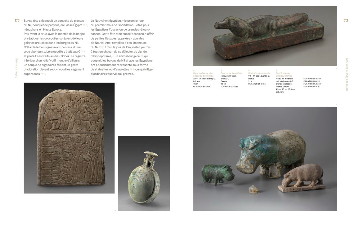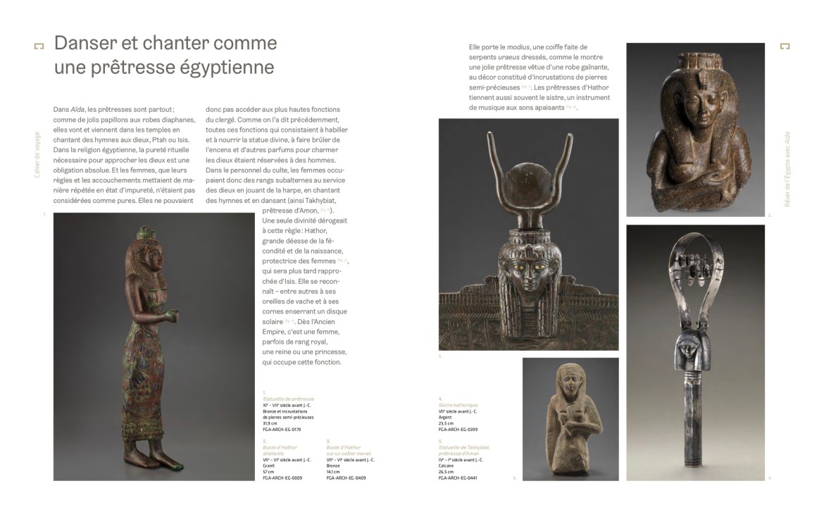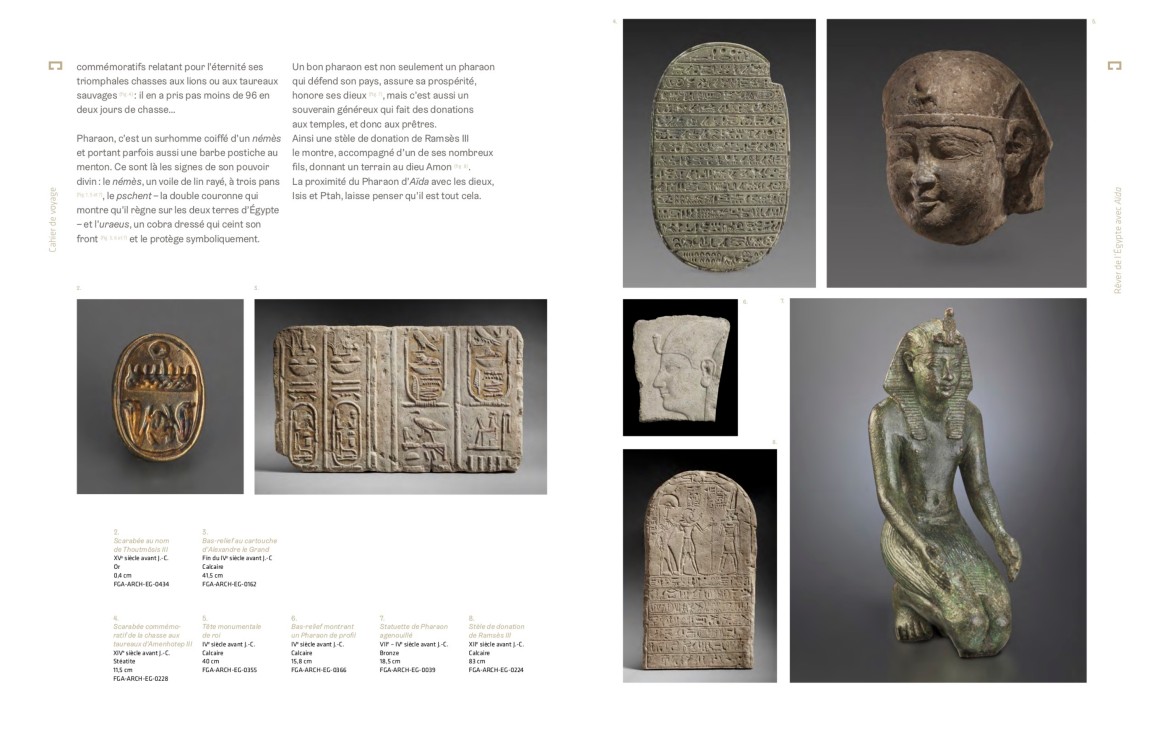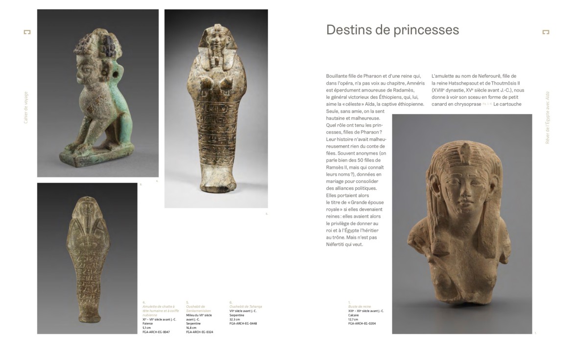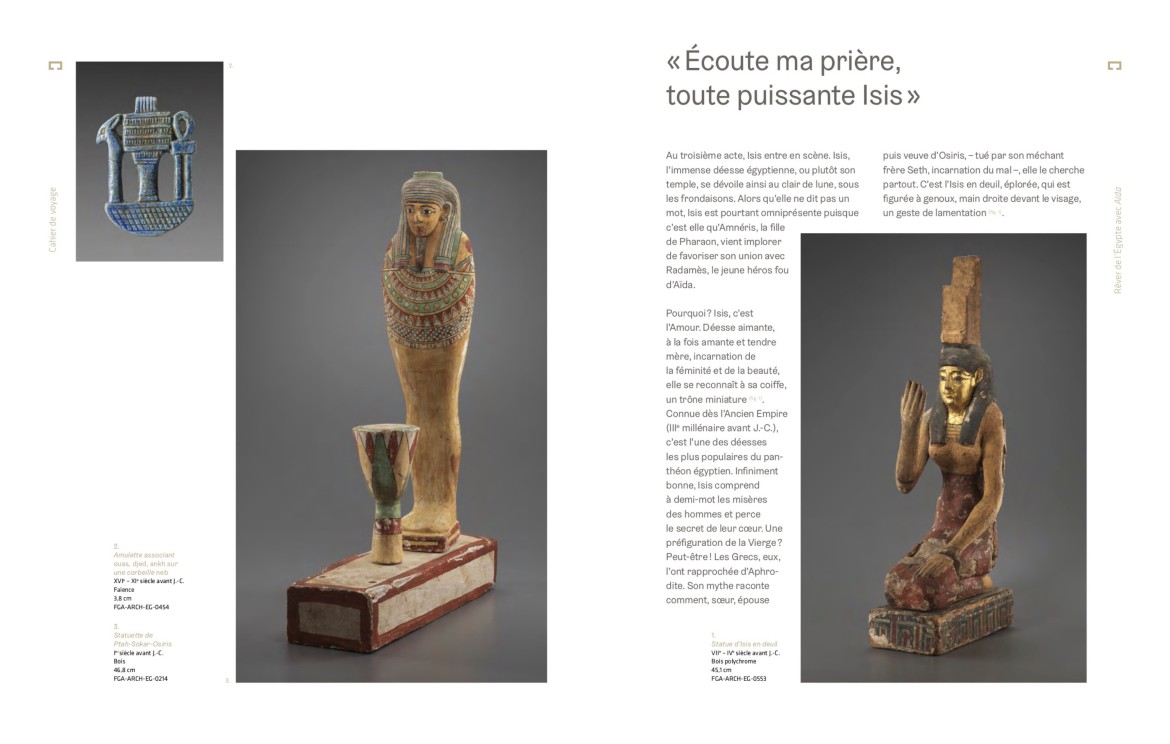 À l’occasion de la programmation d’Aïda, la Fondation convie le public des mélomanes à une rêverie archéologique sur les rives du Nil, en lui offrant, à la fin du spectacle, un livret intitulé Cahier de voyage. L’Égypte d’Aïda dans la collection d’archéologie de la Fondation Gandur pour l’Art.