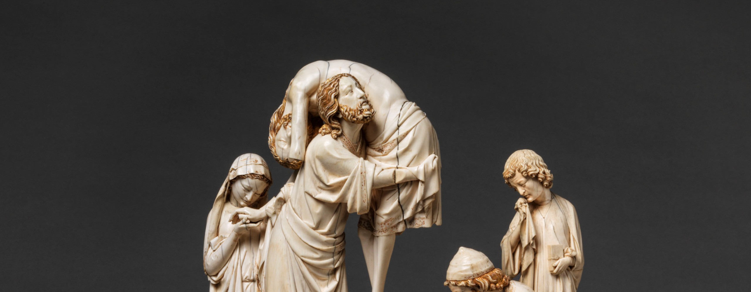 L’œuvre en ivoire est composée du groupe de la Vierge et de Joseph d’Arimathie soutenant le corps du Christ, de la statuette isolée de l’Église, d’une statuette de Nicodème, seuls manquaient les deux statuettes susmentionnnées.