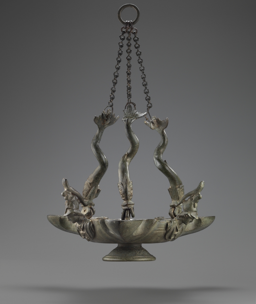 NALampe de suspension à décor de têtes de Minerve et dauphinsIer siècle après J.-C.© Crédit photographique : Fondation Gandur pour l'Art, Genève. Photographe : André Longchamp See in the Collection